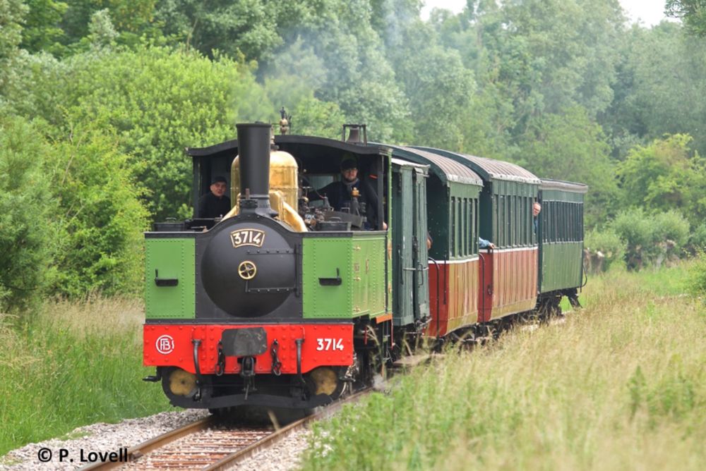 Initialement préservée à Verneuil (Marne) en vue de la création d’un musée des chemins de fer secondaires, la 3714 sera finalement acquise par le CFBS au printemps 1971. Sa restauration prendra presque une décennie, car à l’époque, les moyens de l’Association sont encore très limités.