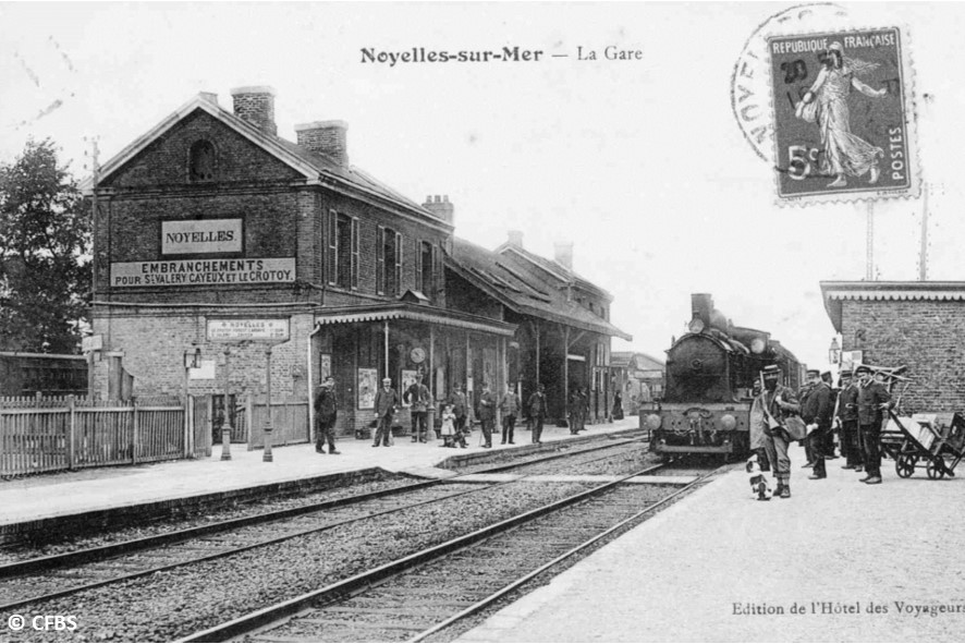 La première ligne de chemin de fer desservant la Baie de Somme fut celle d’Amiens à Boulogne ouverte en 1848. A cette époque, les flots longeaient la voie ferrée à marée haute entre Port-le-Grand et Noyelles-sur-Mer. Cette ligne fut incluse dans le réseau de la Compagnie du Nord en 1851.