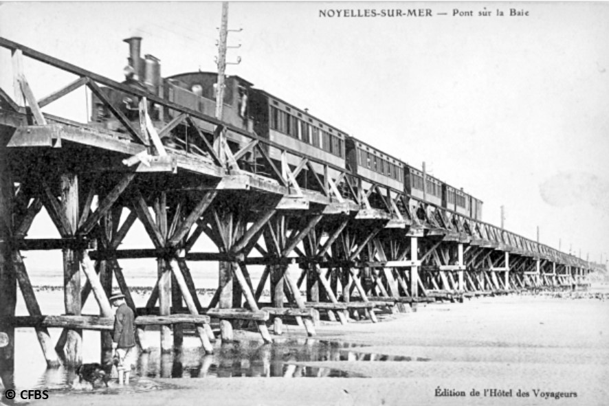 Au début du XXème siècle, l’estacade en bois de 1300 mètres de long qui permettait à la ligne en quatre files de rails de Noyelles à Saint-Valery de traverser la Baie de Somme donnait des signes inquiétants de vieillissement. Lors des grandes marées, avec un fort vent de Nord-Ouest, celle-ci était submergée. Les voyageurs devaient descendre du train, marcher les pieds dans l’eau puis attendre que le train franchisse à vide cette zone délicate.