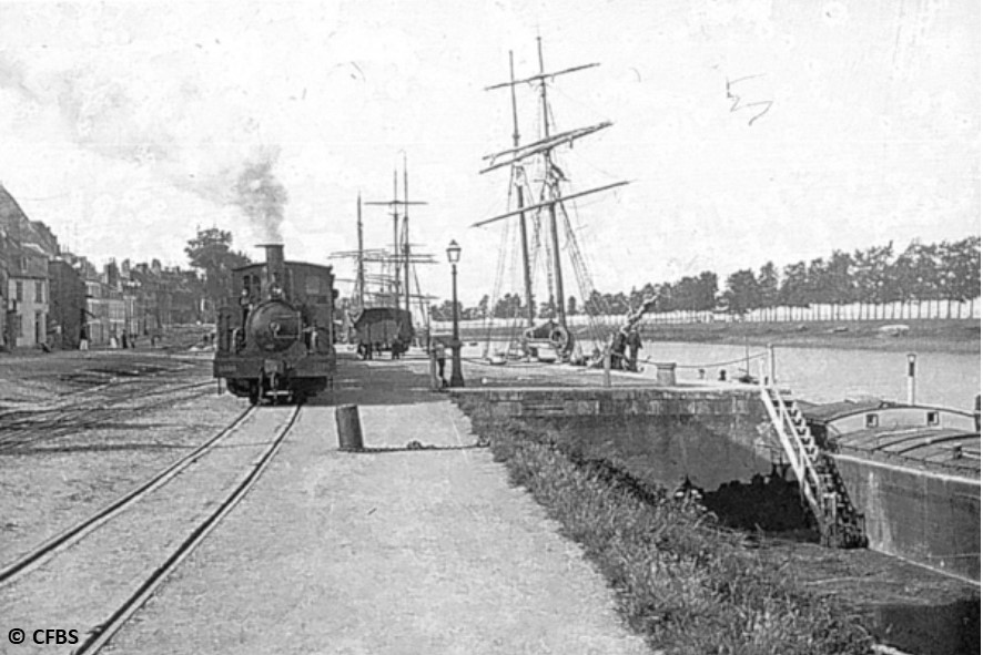 L’autorisation de prolonger la ligne jusqu’au port fut accordée en 1859. Un pont tournant permettait le franchissement de la passe navigable. Des chevaux assuraient la traction des wagons de marchandises à cause de la courbe de 50 m de rayon située au pied de la falaise morte. Les voies furent installées sur le quai en 1863.